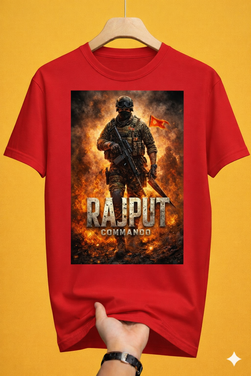 Bold “RAJPUT COMMANDO” typography
