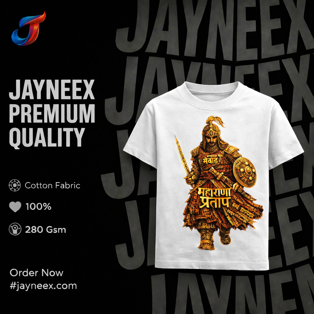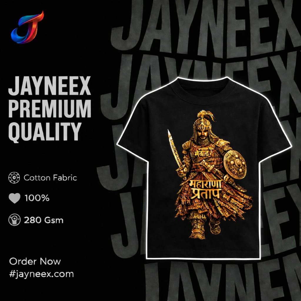 The Maharana Pratap Golden Valor T-Shirt is a tribute to the legendary warrior king Maharana Pratap — representing courage, resilience, and royal pride.