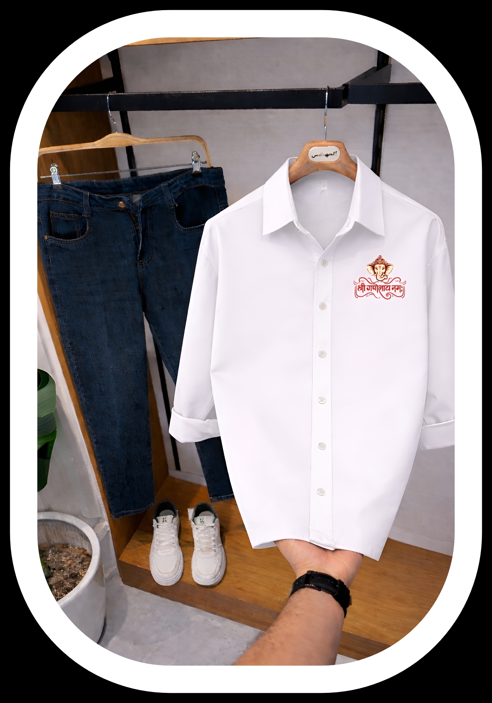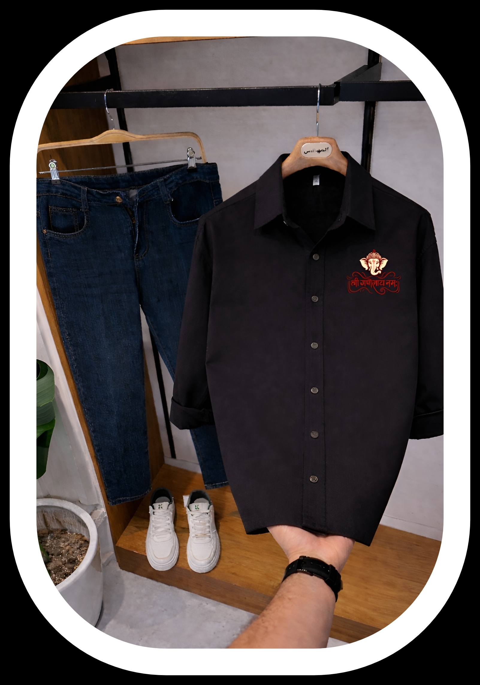 Add devotion and style to your wardrobe with the Jayneex Lord Ganesh Spiritual Collection Shirt. Featuring a powerful Ganesh Ji design in a classic black and white color combination, this shirt represents positivity, wisdom, and spiritual energy while keeping your style modern